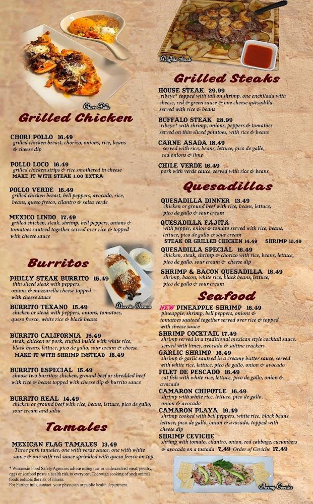 Some signature dishes to explore are the Philly Steak Burrito and Shrimp Rellenos. Appetizers like Chicken Tortilla Soup and Guacamole are local favorites. Desserts including Tres Leches Cake and Mexican Churros cap off meals perfectly. With over 160 menu items, there's plenty to delight every palate.
