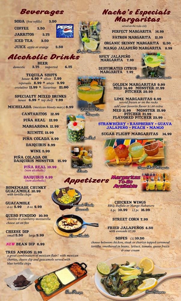 The menu at Nacho's Mexican Grill showcases traditional Mexican dishes prepared with fresh ingredients. Specialty items include mouthwatering burritos, sizzling fajitas, and delicious enchiladas. Vegetarian-friendly choices ensure there's something for everyone.